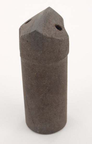 Bohrkopf, wird in das Bohrgestänge geschraubt, gesteckt (hier mittels einfachem Aufstecken des konisch zulaufenden hohlen Bohrkopfes; zur Entfernung des Bohrkopfes vom Bohrgestänge benötigt man spezielles Werkzeug!) oder ist fest mit ihm verbunden. Der Bohrkopf, der mit einem Schneidflügel mit Widiastahleinsatz bestückt ist, bearbeitet das Gestein durch Zerspanen und durch Kerbwirkung. Der Bohrkopf verfügt über zwei Spüllöcher links und rechts vom Schneidflügel. Mit Wasser wird das Bohrklein aus dem Bohrloch herausgespült und gleichzeitig der Bohrkopf gekühlt.