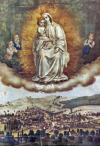 Bild der Festschrift 100 Jahre Pilgerort Härtelwald Jubiläum 3.7.1876 - 3.7.1976 Bild nach einer Lithografie aus dem Privatbesitz einer Familie aus Marpingen