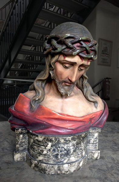 Die Büste Christus zeigt Christus in gängiger Ecce Homo Darstellung.