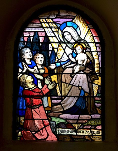 Das Fenster zeigt die Darstellung von Maria als unbefleckt Empfangene