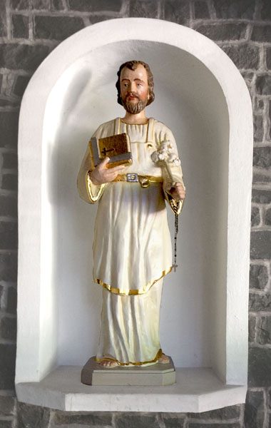 Der rechte Chorraum der Andachtsstätte an der Marienquelle wird durch Wandnischen untergliedert. In der Mitte die Skulptur der Muttergottes mit Kind, darüber ein Relief im Halbrund mit Gottvater und dem Heiligen Geist mit der Inschrift:" Dies ist mein geliebter Sohn." in den Nischen der Seitenwände sind die Skulpturen des Hl. Josef mit Buch und Winkelmaß und des Hl. Erzengel Michael zu sehen. Alle Skulpturen wurden in Gusstechnik hergestellt und sind gefasst.
