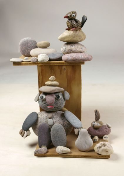 Schülerarbeiten der Missionshausschule St. Wendel aus den Jahren 1960 bis 2000, entstanden in Arbeitsgemeinschaften des 6. Schuljahres. In jedem Jahr wurden nach Angaben des künstlerischen Leiters Karl Heindl verschiedene Materialien wie Holz, Ton, Stein oder Draht verwendet, hier Beispiele von Arbeiten aus Stein auf einem Holzgestell.