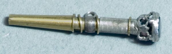 Silberner Knebel-Taschenuhrschlüssel mit einem türkisfarbenen Halbedelstein am Kopfende.